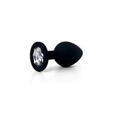 Анальная пробка силиконовая черная с белым кристаллом Fantasy Toys M
