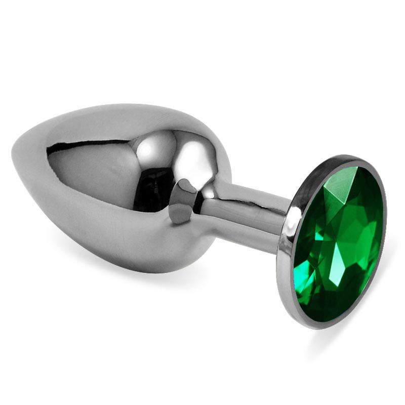 Анальная пробка "Vandersex" металл, зеленый кристалл S, Silver