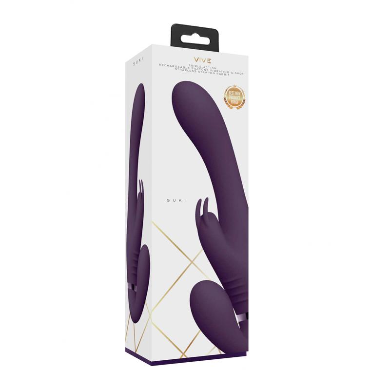 Suki — это инновационный безремневой страпон от линейки VIVE, идеальный вибратор для пар, объединяющий комфорт и мощь. Оснащен тремя независимыми моторами: двумя вибрационными в головке для активной стимуляции точки G/P партнеров и одним в клиторальном отростке. Вибратор Suki работает тихо (60 дБ), несмотря на высокую производительность.