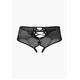 Передняя часть шортиков с доступом выполнена из полупрозрачной сетки, через которую просвечивает нежная кожа. Заднюю украшает провокационная «корсетная» шнуровка.